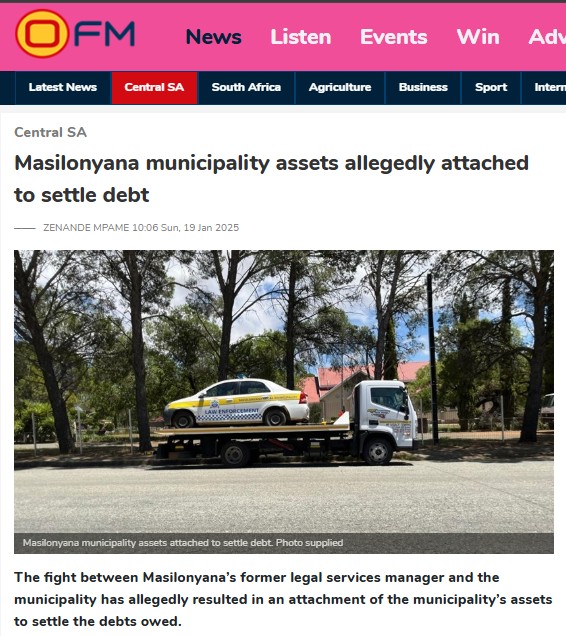 An urgent application had been filed to halt the execution, said municipal spokesperson Zongezile Ntjwaebule, adding the municipality is still awaiting the outcome of a review application related to the same matter. The urgent hearing between Masilonyana, Mogaecho, and the South African Local Government Bargaining Council is scheduled for Friday (31/10).