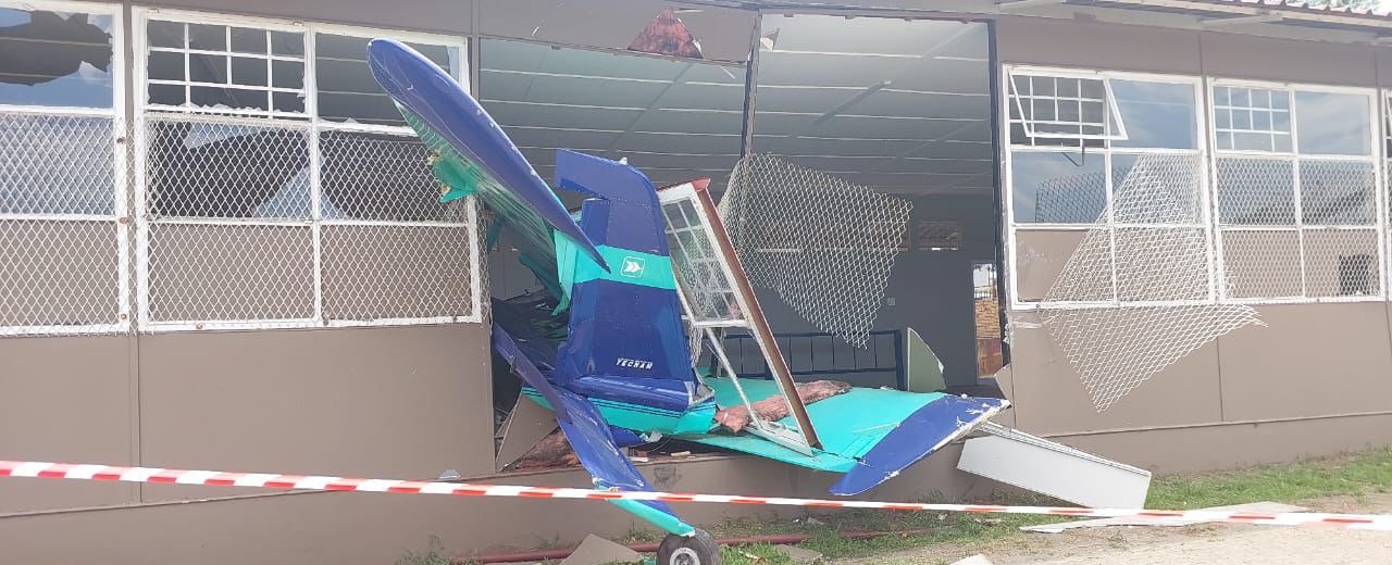 A light aircraft crashed into the tuck shop at Hoërskool Alberton in Gauteng’s East Rand on Sunday morning, causing significant structural damage. No injuries were reported.