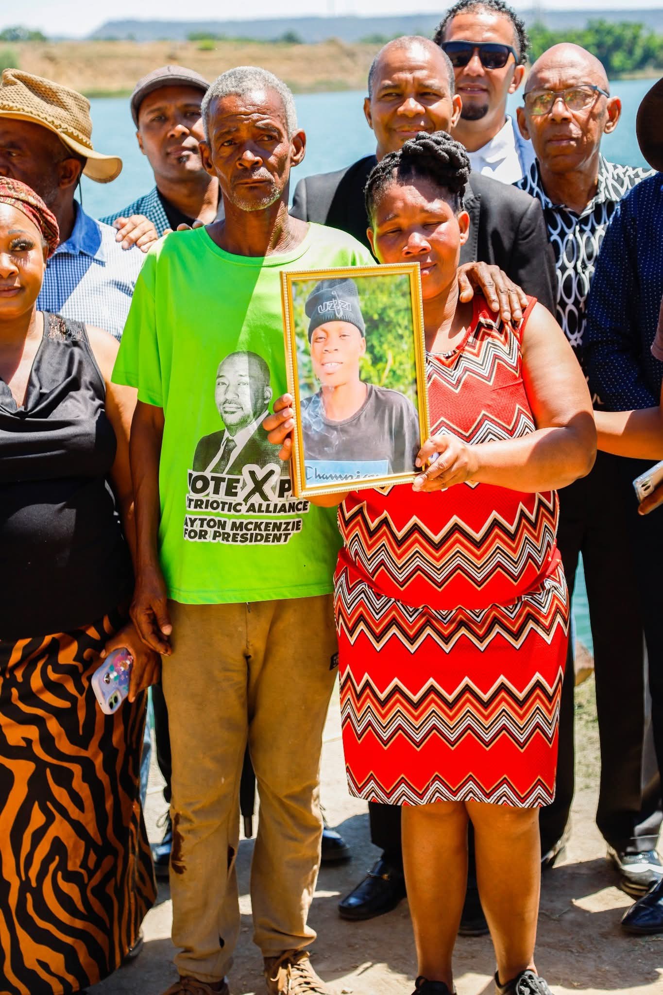 Van Wyk se familie op die dag van sy gedenkdiens by die steengroef. Foto: Facebook/George Thyzel Swarts
