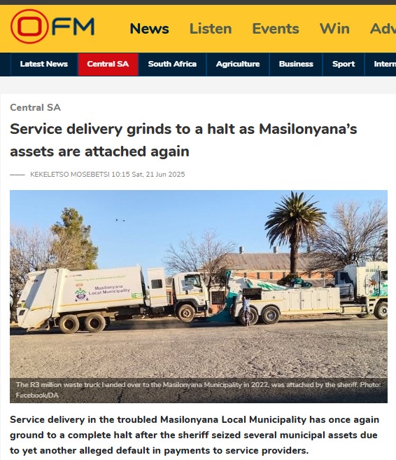 Earlier this year, the sheriff attached municipal property worth more than R450,000 in a similar case involving Mogaecho. In June, the sheriff had seized additional municipal vehicles, including a grader, tipper truck, and waste truck valued at R3 million, after the municipality again failed to pay service providers.