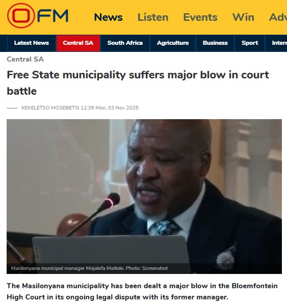 The latest legal setback follows the municipality’s unsuccessful attempt to appeal a court order compelling it to pay Mokgaecho. On Friday (31/10), the court struck the municipality’s urgent application for appeal off the roll after it failed to settle the money owed to its former employee.