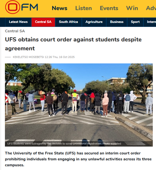 Six UFS students to reappear in court for public violence charges─── ZENANDE MPAME 14:25 Tue, 04 Nov 2025