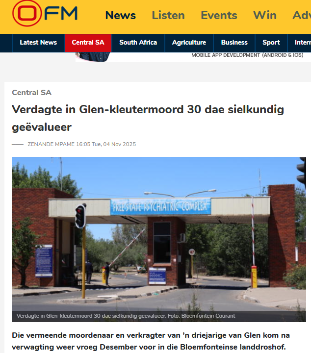 Die saak teen haar vermeende moordenaar en verkragter sal vroeg in Desember in die Bloemfonteinse landdroshof hervat, nadat die beskuldigde ’n maand lank in die Vrystaatse psigiatriese hospitaal vir waarneming was.
