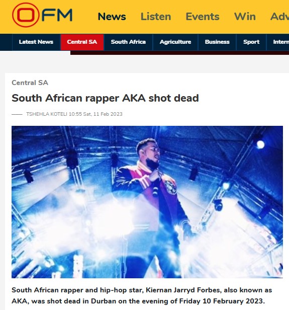AKA, whose real name was Kiernan Jarryd Forbes, was shot dead in Durban on the evening of Friday, 10 February 2023. The award-winning artist was 35 years old.