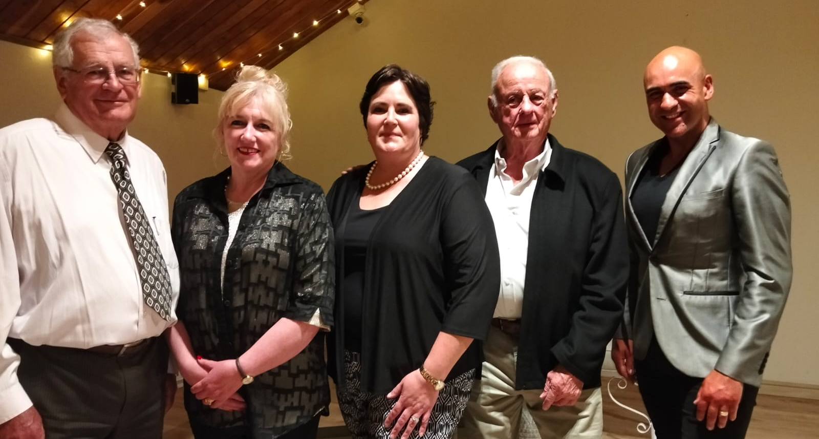 Die Bergprag-sentrum vir bejaardes vier vanjaar sy 21ste bestaansjaar. Van links is ds. Dawie Kriel (voorsitter), Mariaan Briedenhann (bestuurder), Rika Wolmarans (Engo se direkteur: bejaardesorg), Jan Wiid (voorsitter van die raad van trustees) en De Wet Claassens (Engo se uitvoerende hoofdirekteur). Foto verskaf