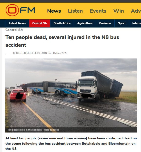 Premier Letsoha-Mathae echoed the province’s collective shock, saying the N8 crash was one of the worst she has seen in a while. She urged motorists, public transport operators, and freight companies to exercise heightened caution, especially as traffic volumes increase toward the festive season.