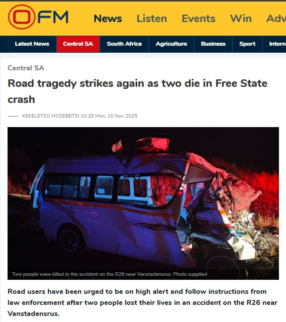 Free State road carnage: urgent warning from survivors─── KEKELETSO MOSEBETSI 14:22 Mon, 17 Nov 2025