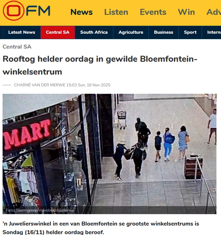 Verdagtes soek ná twee rooftogte in Bloemfontein─── CHARNÉ VAN DER MERWE 16:49 Mon, 17 Nov 2025