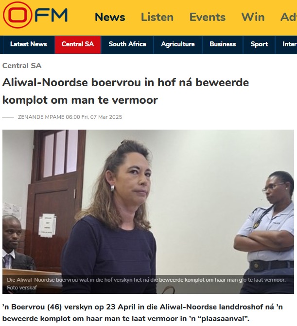 Aliwal-Noord: Boervrou binnekort weer in hof ná beweerde huurmoordplan─── CHARNÉ VAN DER MERWE 10:00 Mon, 24 Nov 2025
