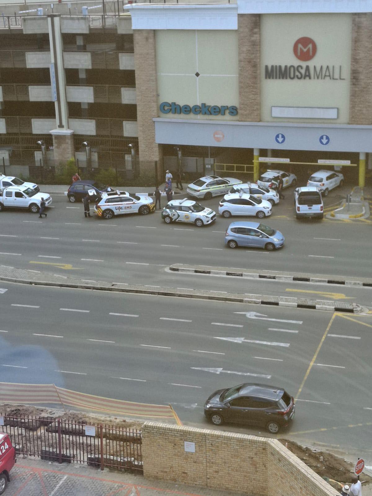 The entrance at Mimosa Mall was closed by police and emergency personnel. Photo: Facebook/Mpandulo Lawrance