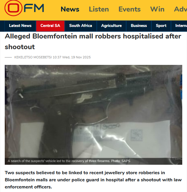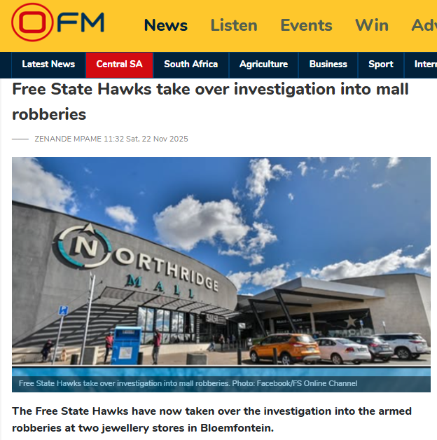 The robbers who robbed the jewellery stores in Bloemfontein could be linked to a robbery at the Walmer Park shopping centre in Gqeberha that happened on Tuesday (18/11), on the day of the arrests.