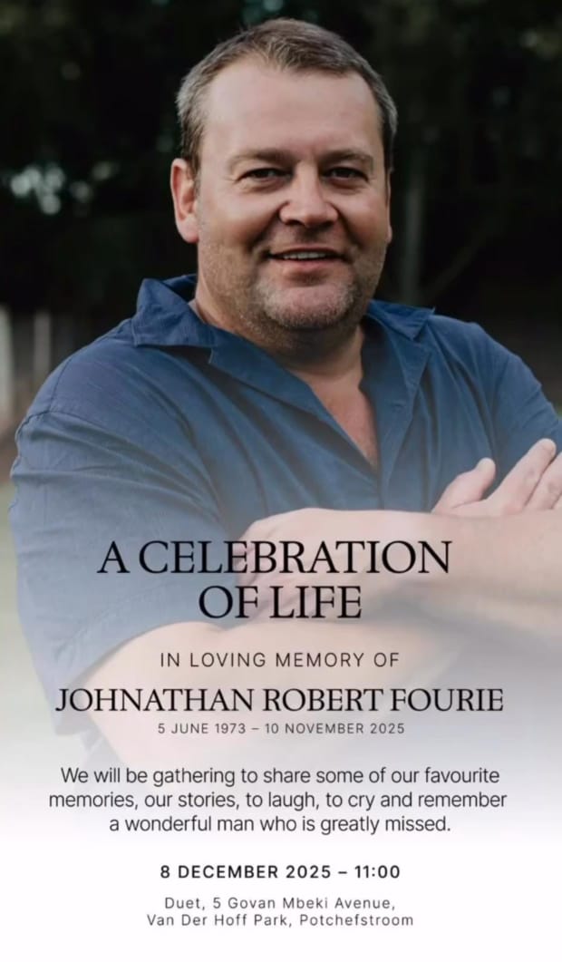 ’n Lewensviering word op 8 Desember gehou vir die sakeman van Potchefstroom, wat noodlottig gewond is in ’n skietery waarin sy broer ernstig beseer is.