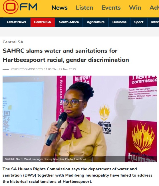This follows the release of a damning South African Human Rights Commission (SAHRC) report on Wednesday (27/11), which detailed the role played by DWS in failing to address unfair discrimination and governance failures within the Hartbeespoort Dam economy. The investigation stemmed from long-standing complaints by business owners and residents who argued DWS had, for years, allocated state-owned shoreline land in a manner that disadvantaged black applicants.