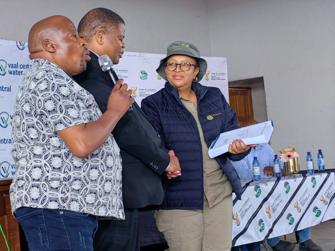DWS deputy minister David Mahlobo handing over the Jagersfontein disaster report to Free State premier MaQueen Letsoha-Mathae. Photo: Kekeletso Mosebetsi