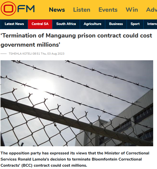 Correctional services to take over as Mangaung prison’s contract expires─── ZENANDE MPAME 11:50 Wed, 03 Dec 2025