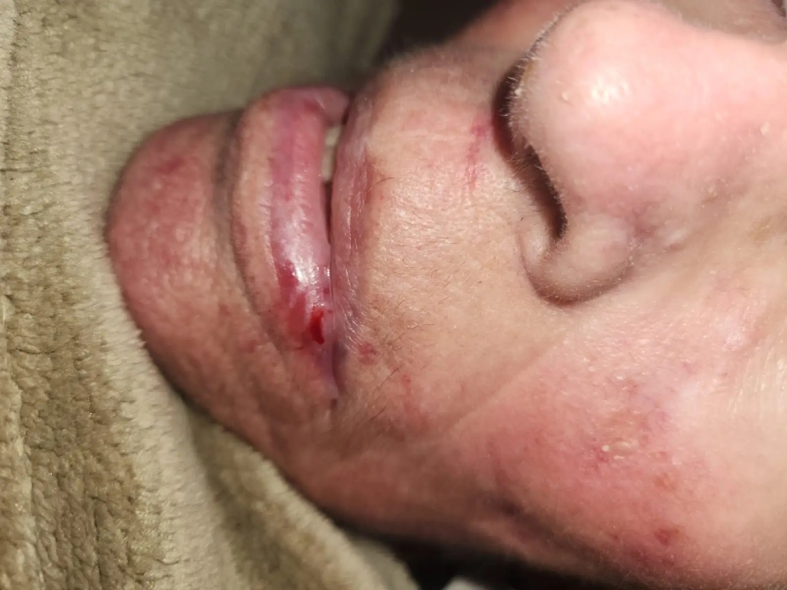 Bettie Payne se mond was stukkend en opgeswel. Foto verskaf