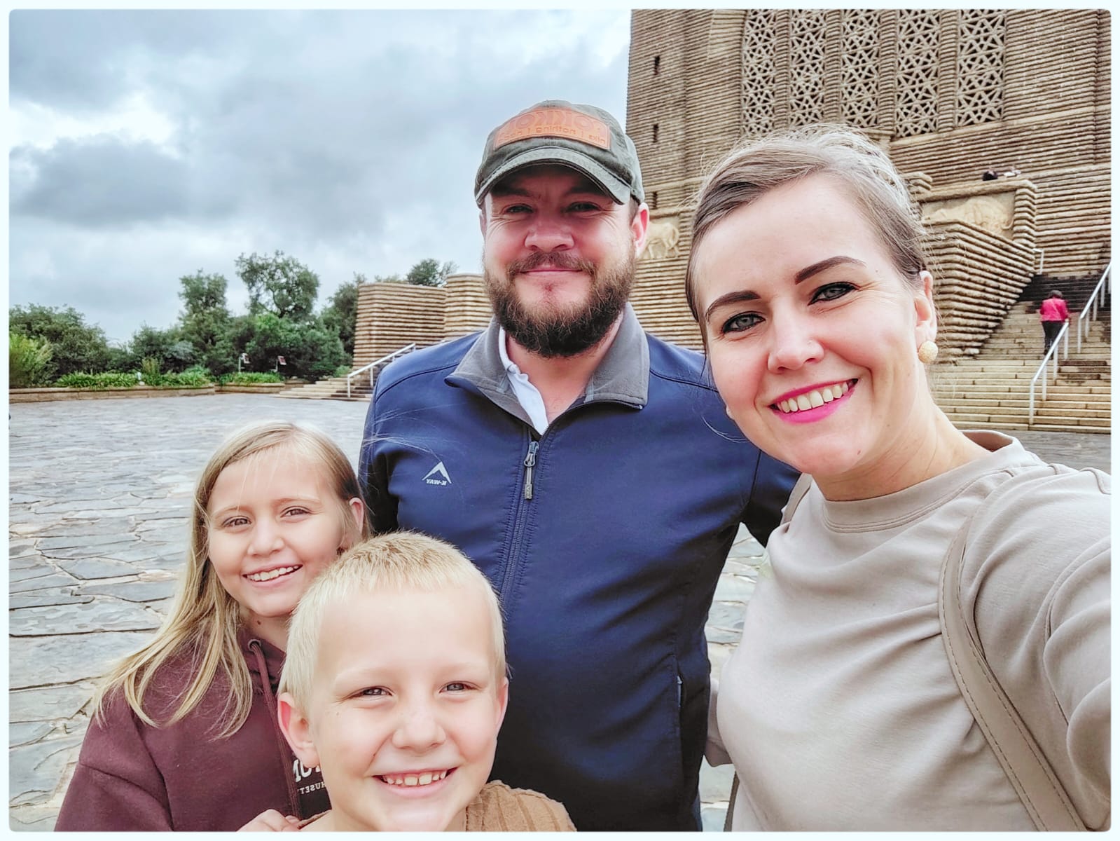 Die gesin voor die Voortrekker-monument in Pretoria. Foto verskaf