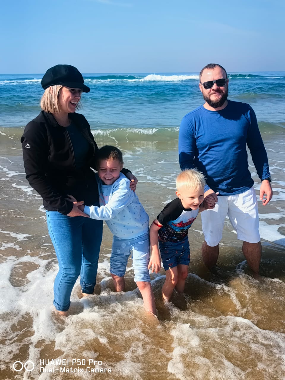 Die gesin by die see tydens Monique se kanker-reis. Foto verskaf