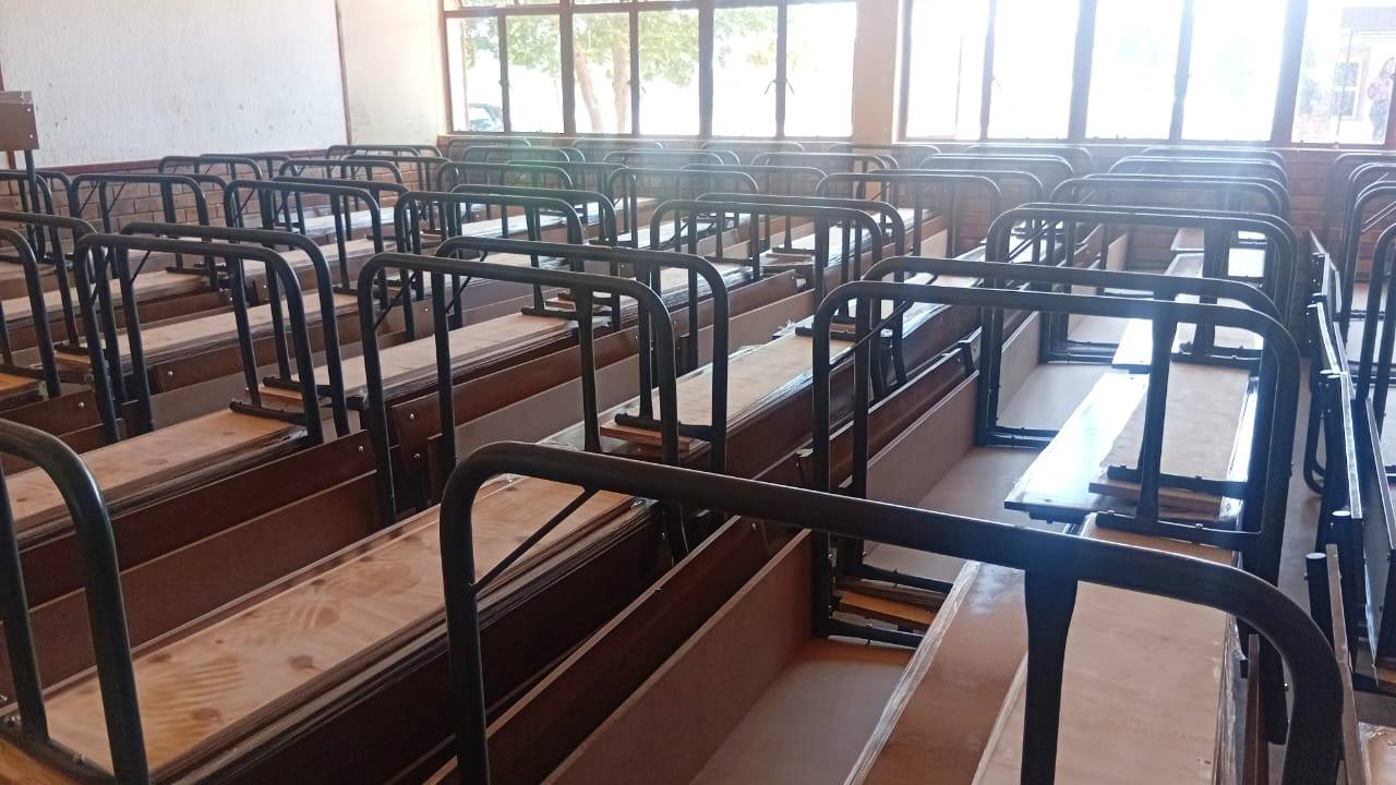 New desks in a classroom at Nkang Mahlale Secondary School. Photo: Facebook