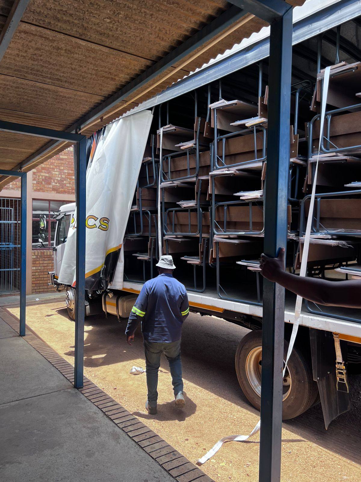 200 desks have already been delivered to Nkang Mahlale Secondary School in Jouberton, with more expected this week. Photo: Facebook