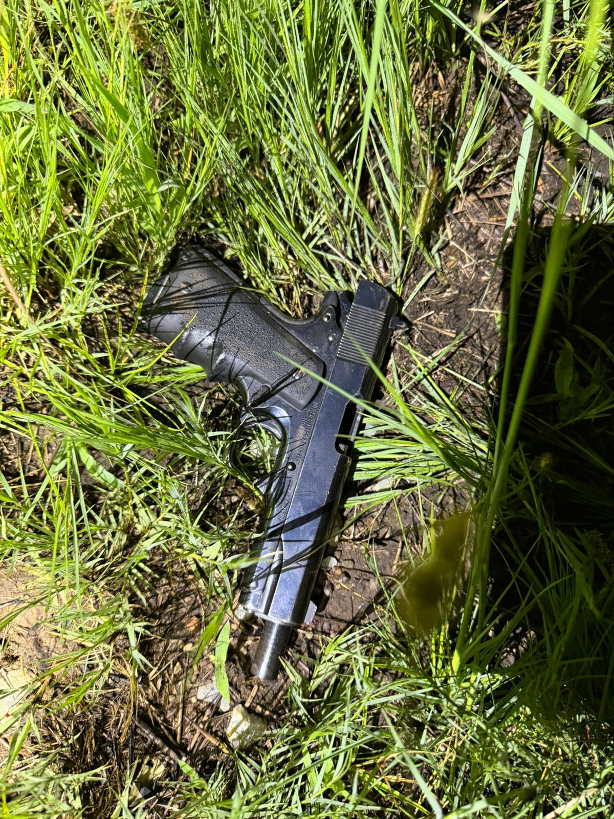 ’n Pistool wat in die verdagtes se voertuig gevind is. Foto: SAPD