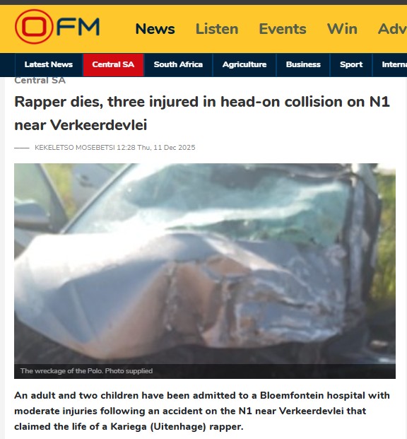 The latest crash adds to a growing list of fatal incidents on Free State roads, including an accident on the N1 near Verkeerdevlei that claimed the life of a Kariega (Uitenhage) rapper on Thursday (11/12).