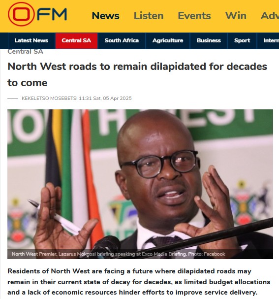 North West struggles with service delivery, despite efforts by the provincial government’s Thutsa Lerole programme to accelerate service provision. Residents continue to face challenges such as unreliable water supply and deteriorating infrastructure amongst others. Provincial authorities have previously attributed some of these challenges to limited funding, noting that North West is largely rural.