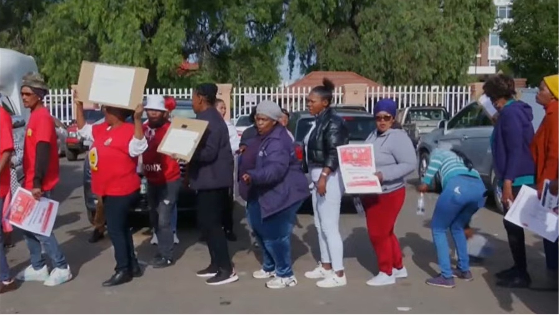 Gesondheidswerkers betoog in Kimberley vir aanstellings. Skermgreep: SABC News