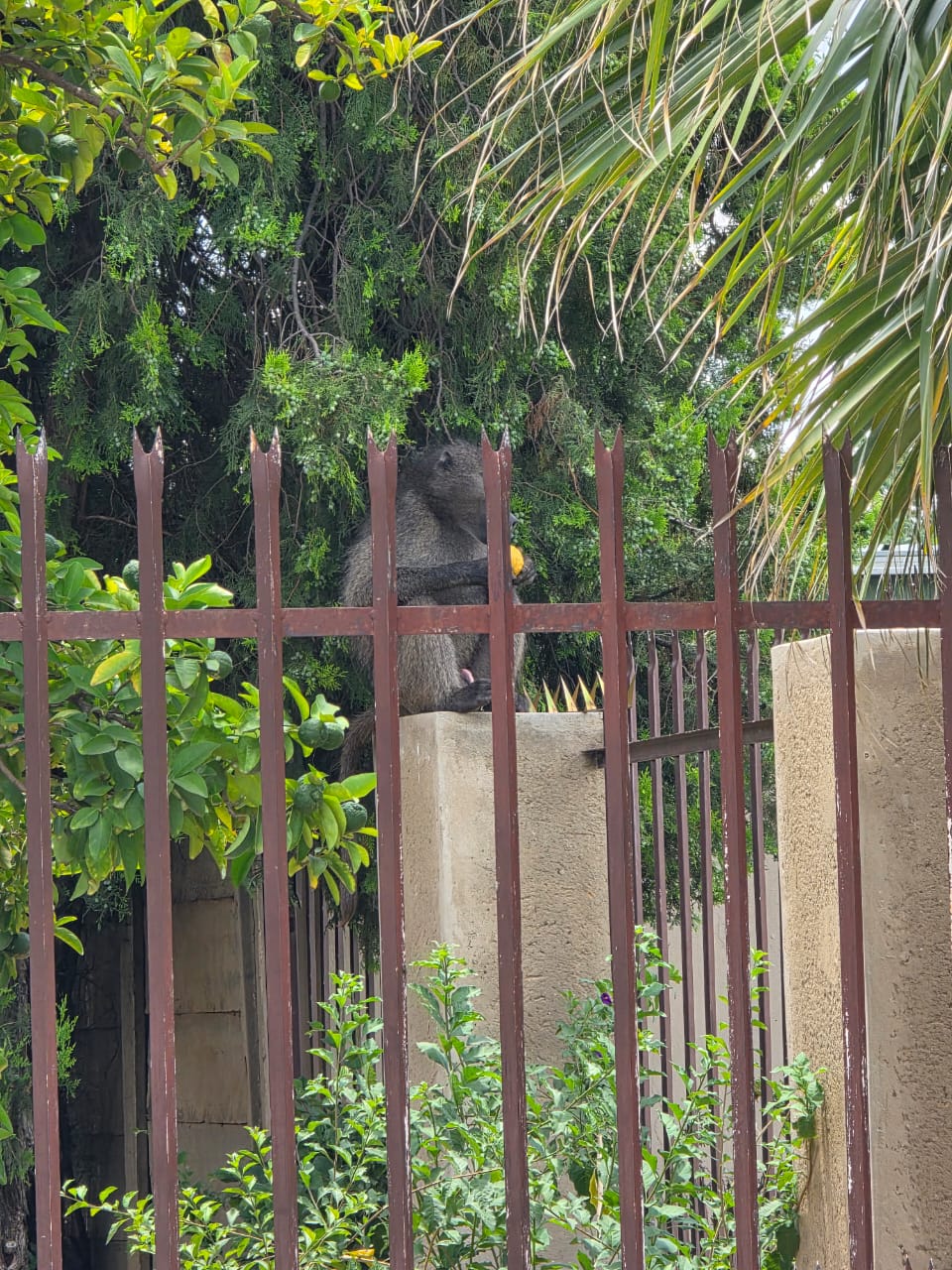 The baboon was spotted sitting in someone's yard, eating lemons. Photo supplied