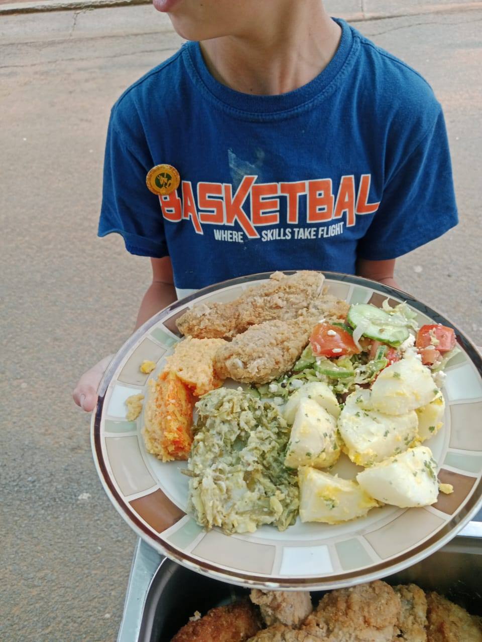 “Die maaltye van die dag hang af van watter bestanddele beskikbaar is. Op goeie dae ontvang die kinders ’n vol bord met gaar kos – kerrie-en-rys, vetkoek met maalvleis, pap met sous en vleis, of visvingers as ’n spesiale bederf. In die somer is daar slaaie en in die winter warm potte sop,” sê Amanda.