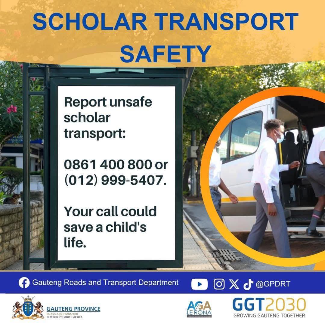 Parents and guardians are encouraged to contribute to the safety of learners by reporting instances of reckless driving, unroadworthy vehicles, and noncompliant transport operators to the relevant authorities. The Gauteng department of transport urged the public to report any unsafe scholar transport conditions to the hotline numbers.
