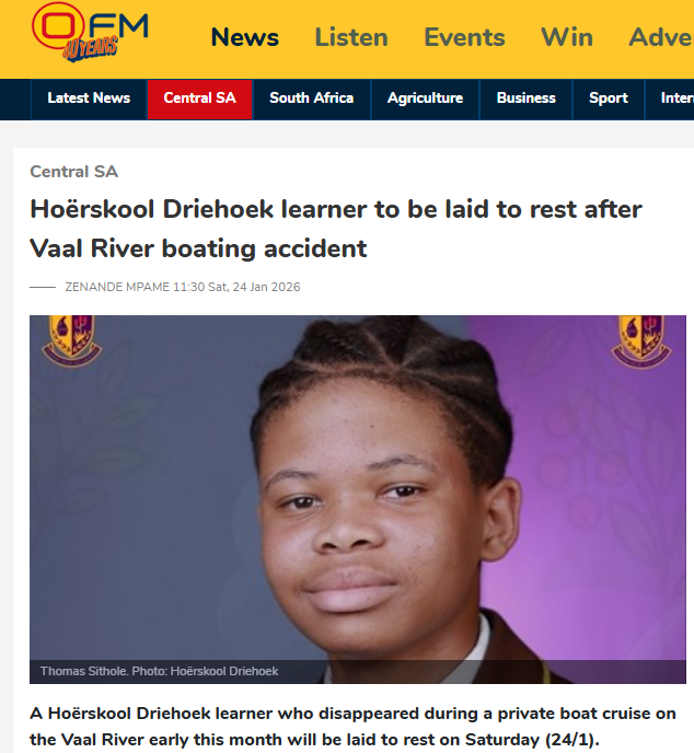 The Hoërskool Driehoek learner was laid to rest on Saturday, 24 January, at the Roda Yende Community Hall in Sharpeville. A memorial service was held for him on Thursday (29/1) at Kompas Gemeente in Vanderbijlpark.