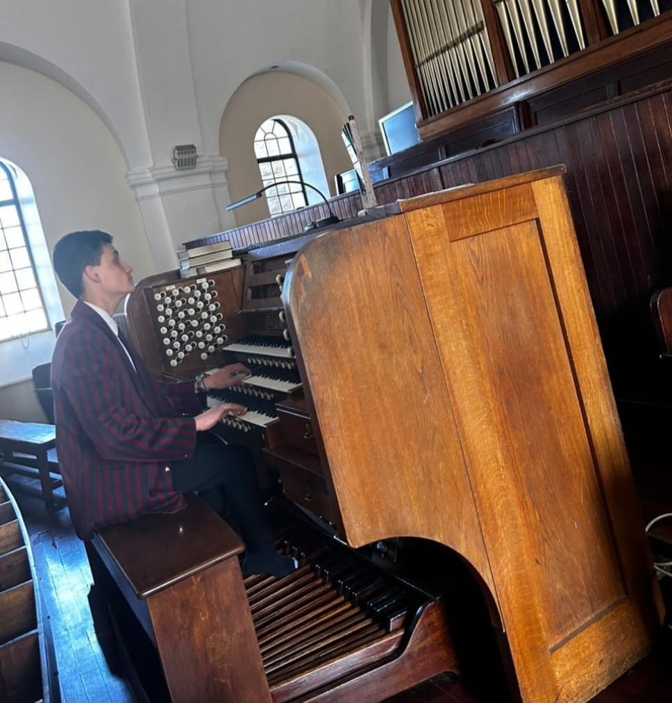 Luke was dikwels in aksie op die orrel van sy skool, St John’s College in Johannesburg. Foto verskaf