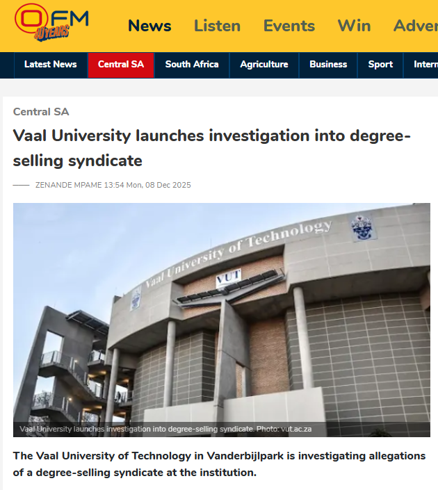 Vaal University says investigations at institution mark turning point─── ZENANDE MPAME 14:29 Thu, 05 Feb 2026