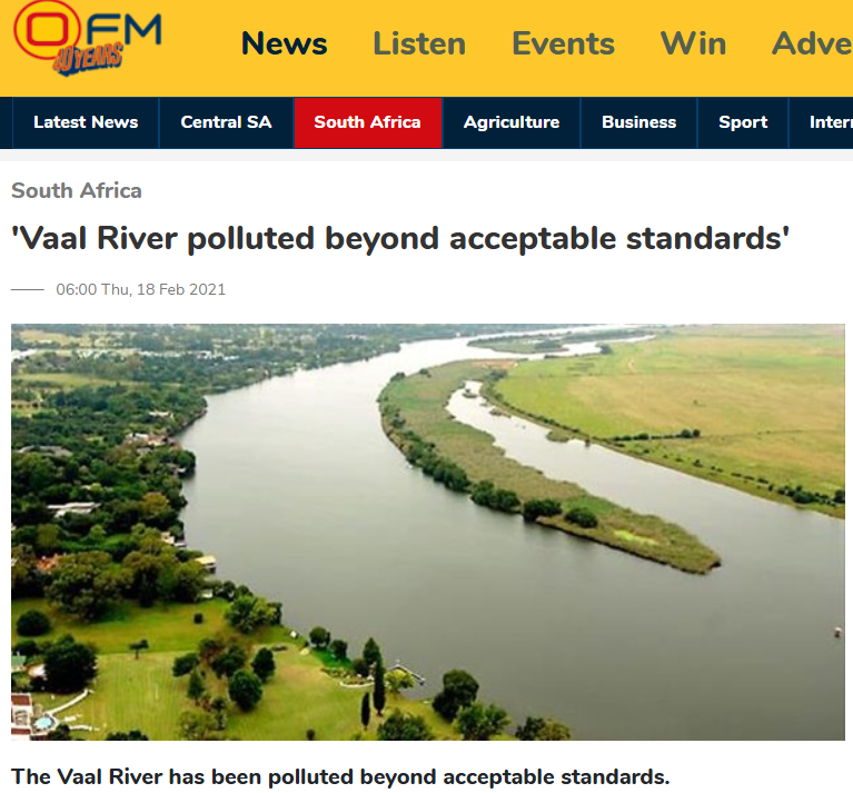In 2021, the commission found the Vaal River had been polluted beyond acceptable standards, following an investigation into the sewage that had been spilling into the river.