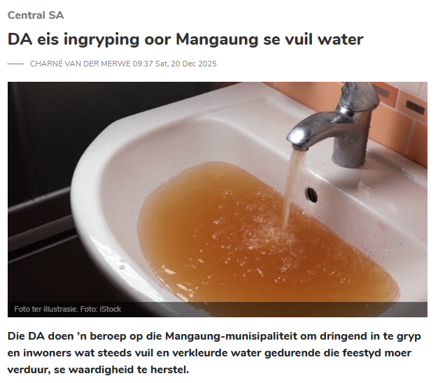 Wydverspreide diensleweringsmislukkings, insluitend langdurige wateronderbrekings, verkleurde en onveilige watervoorsiening, ineenstortende padinfrastruktuur en herhalende rioolstortings is van die uitdagings. “Openbare geriewe soos swembaddens in Botshabelo, Heidedal en Dewetsdorp bly onbruikbaar, terwyl inwoners moet saamleef met agterstande in afvalverwydering en verwaarloosde openbare ruimtes.”