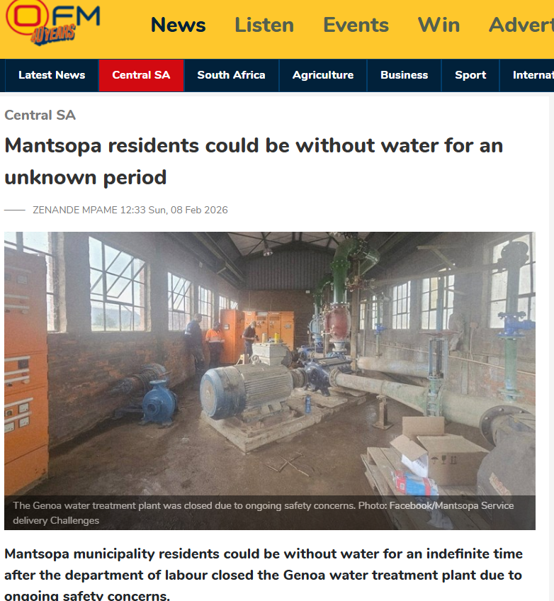Ladybrand, Hobhouse residents without water as tanker delays continue─── ZENANDE MPAME 12:05 Tue, 10 Feb 2026