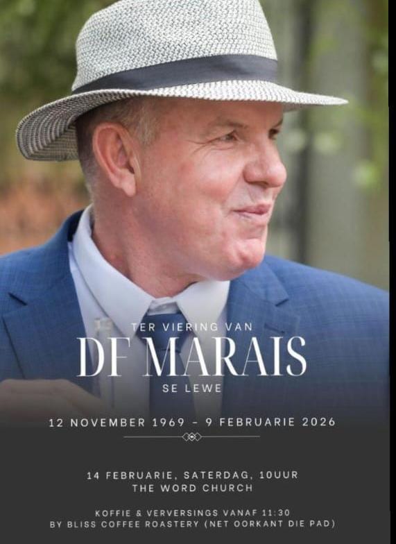 Marais se lewensviering word vir Saterdag (14/2) om 10:00 in The Word Church beplan.