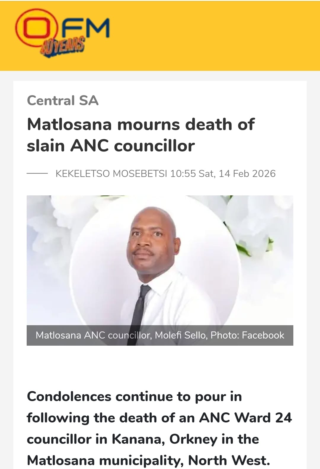 Suspect to appear in court for murder of ANC councillor─── KEKELETSO MOSEBETSI 10:17 Sun, 15 Feb 2026