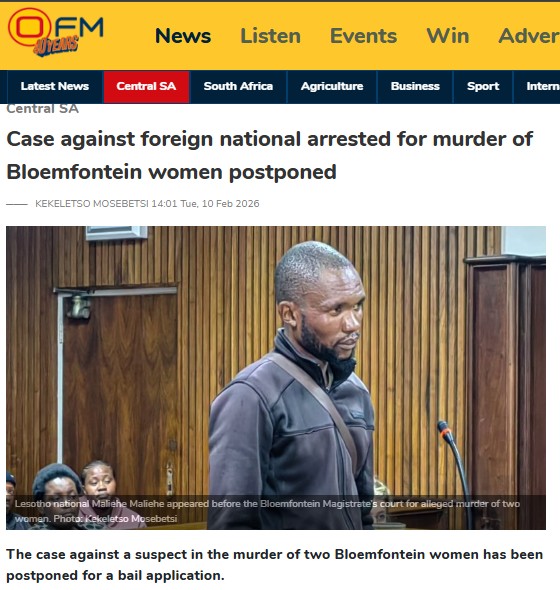 Bloemfontein double murder accused abandons bail bid─── KEKELETSO MOSEBETSI 14:47 Wed, 18 Feb 2026