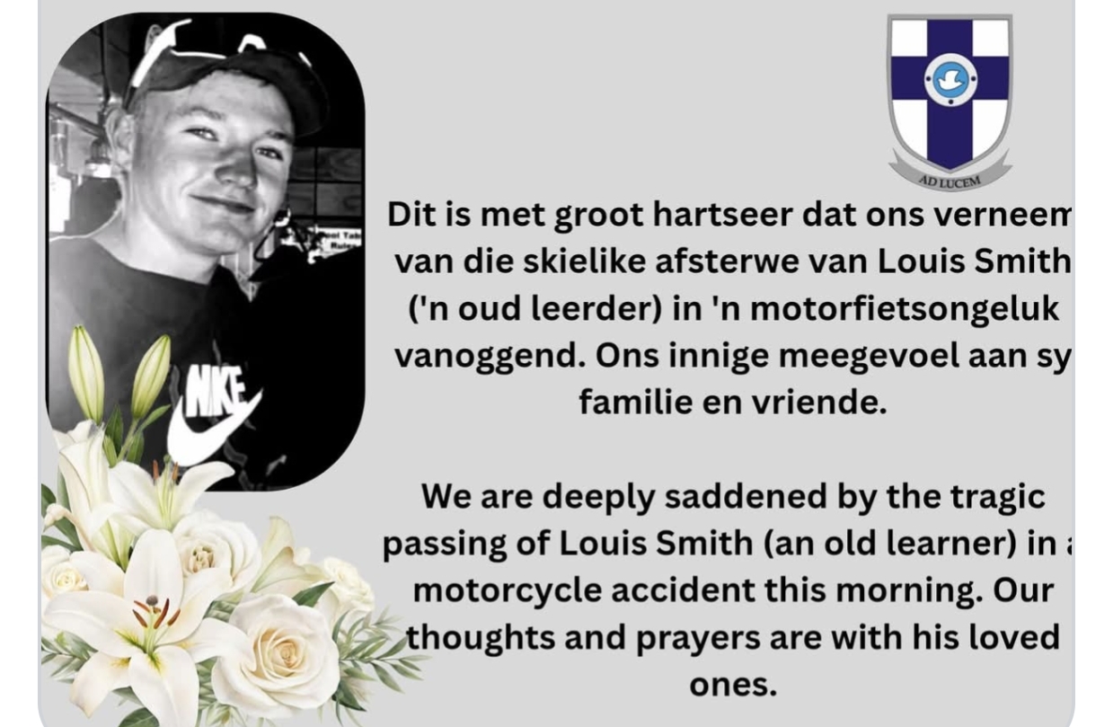Louis Smith (19), van Hospitaalpark, is minstens die tweede jong Bloemfonteiner wat die afgelope weke in ’n voertuigbotsing oorlede is. Hy het Saterdag (14/2) omgekom nadat sy motorfiets met ’n voertuig gebots het, waarna hy hy teen ’n lamppaal vasgery het.