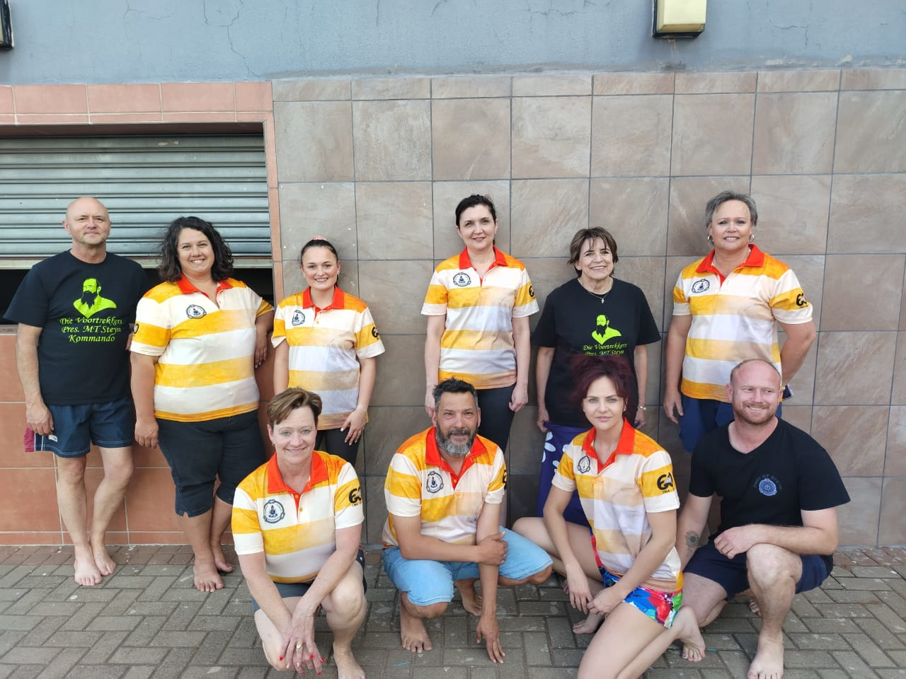 Die ysbeerswemmers is van links, voor: Karin Grundlingh, Jaco Pheiffer, Juanita Bekker en Wimpie Pienaar. Agter: Collin van der Werf, Benita Pheiffer, Margie Botha, Karin Smith, Karen du Plessis en Melinda Laubcher. Foto verskaf