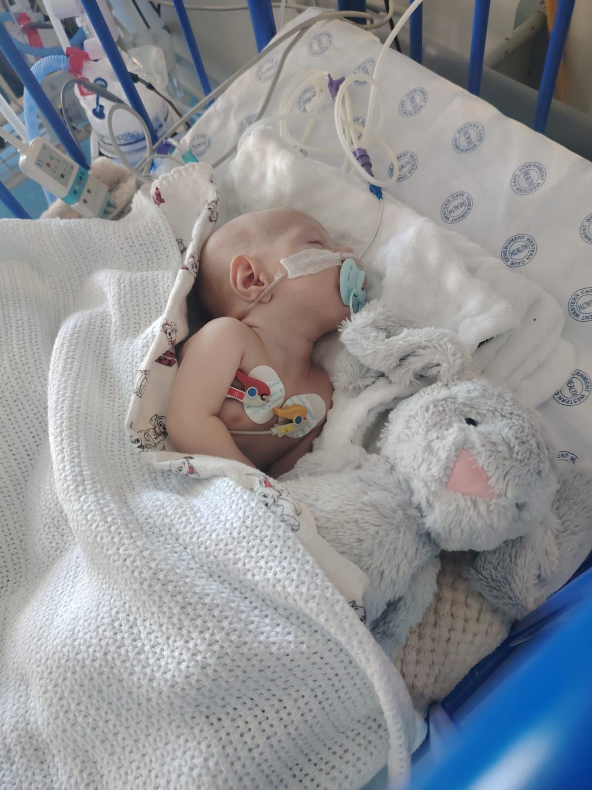 “Hy is nou van suurstof af en haal self asem. ’n Klein voedingsbuis bly in plek vir voeding, maar ek borsvoed hom elke drie uur. Hy drink lekker. Dit gaan baie, baie goed met hom,” sê Geraldine.