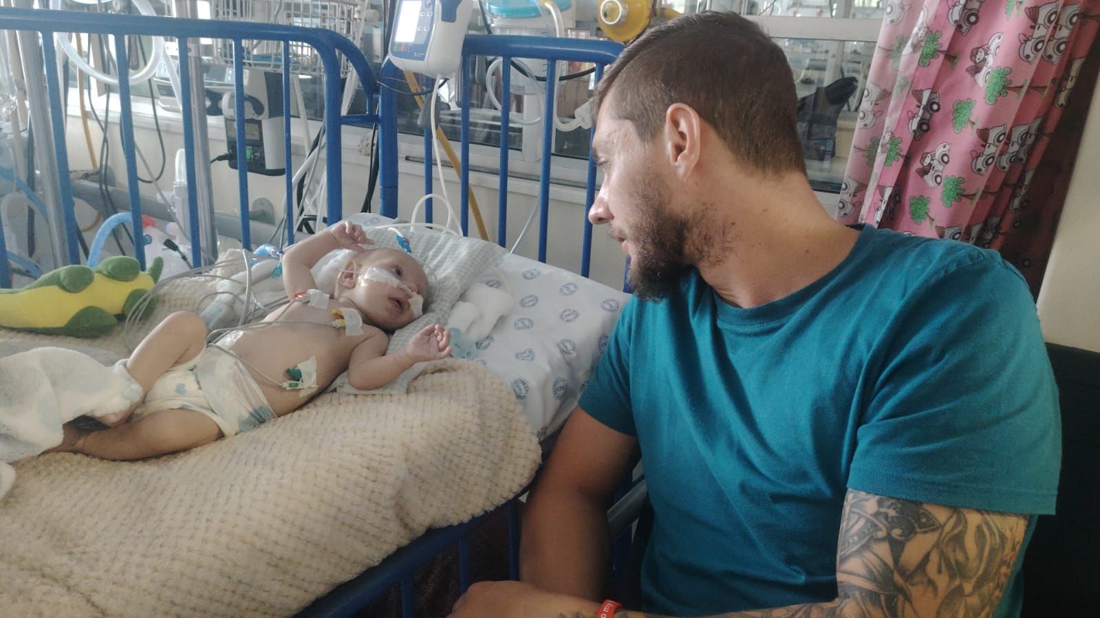 David Breytenbach en sy seun, Enzo, in die hopsitaal. Foto verskaf