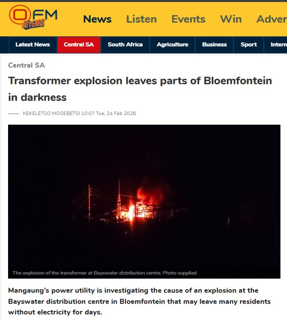 Power restoration efforts ongoing after Bayswater transformer explosion─── KEKELETSO MOSEBETSI 12:30 Tue, 24 Feb 2026