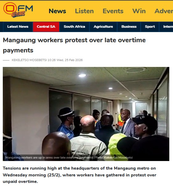 OFM News earlier reported a media briefing at the headquarters of the Mangaung metro on Wednesday (25/2) to address ongoing water and electricity challenges in Bloemfontein was disrupted. Scores of employees from the waste department expressed frustration over delayed overtime payments.