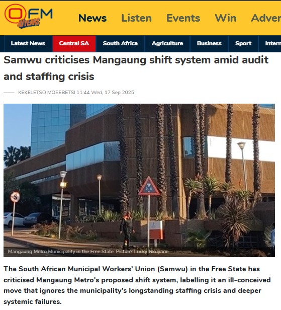 However, the proposed shift system has faced criticism from the municipal workers’ union Samwu in the Free State. The union has labelled the plan an ill-conceived move that ignores the metro’s longstanding staffing crisis and deeper systemic failures.