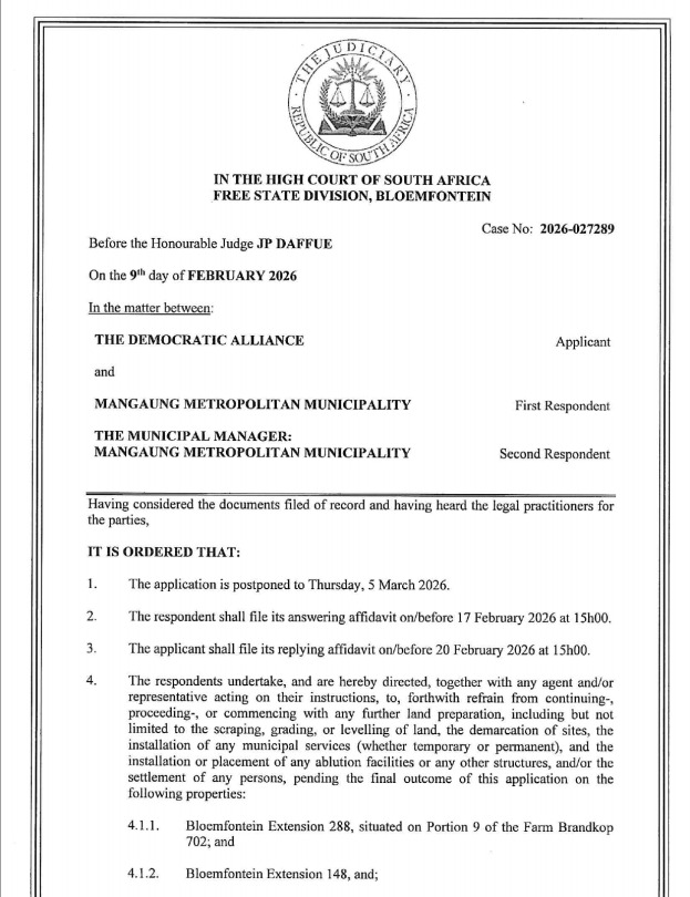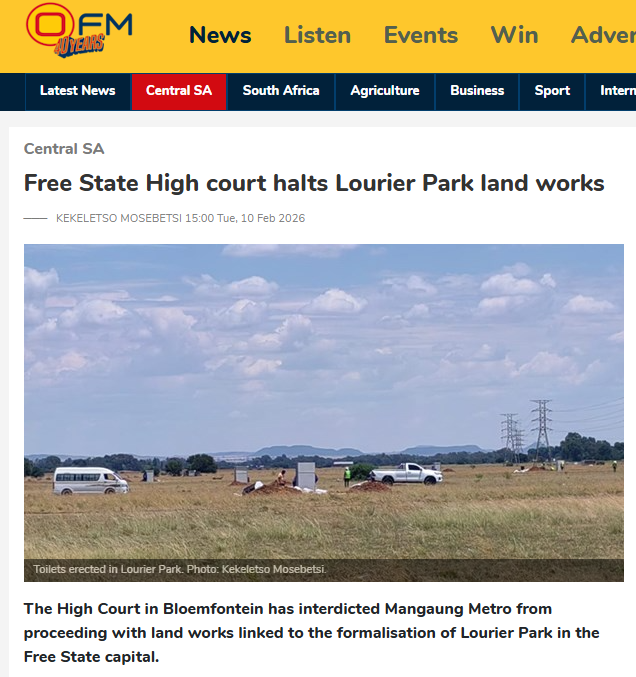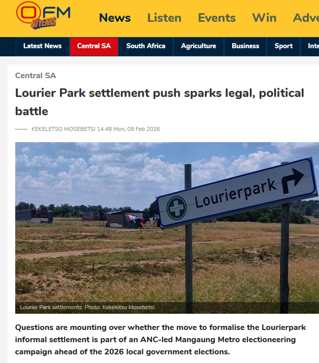 Hy voeg by kortpaaie vir politieke gerief kan langtermyn-gevolge vir inwoners hê. “Ons sal voortgaan om beslissend op te tree om inwoners te beskerm en te verseker behuisingsontwikkelings in Mangaung verskaf die betroubare dienste, veiligheid en waardigheid wat gemeenskappe verdien.”