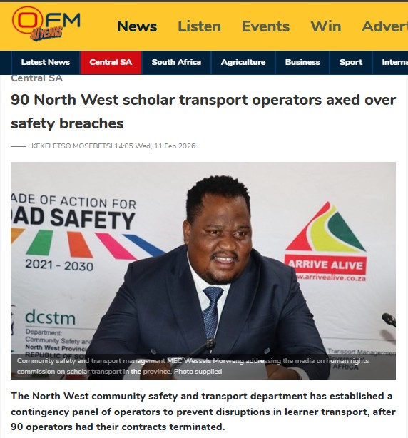 Responding to a report by the SA Human Rights Commission (HRC) on Wednesday (11/2), MEC Wessels Morweng said the contraventions included inconsistent service, abandoning routes, operating unroadworthy vehicles, or reckless conduct that could endanger learners.