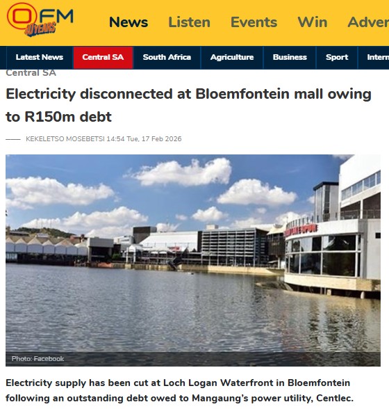 Centlec cut the power supply at Loch Logan Waterfront in Bloemfontein last month following a court victory. The Michael Family Trust (TMFT) failed to settle its R150m outstanding electricity account.